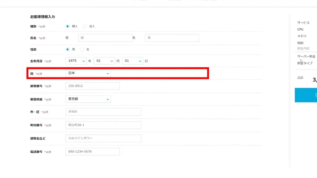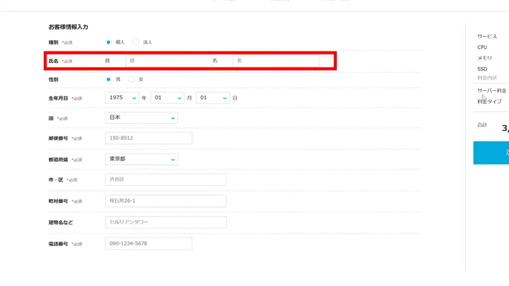 ここでは個人もしくは企業の情報を入力する項目になっています。