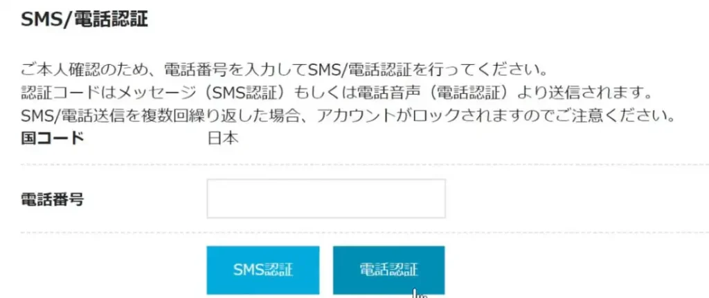携帯電話の場合は操作のし易いSMSでOKですが、固定の場合は電話認証を選択しましょう。