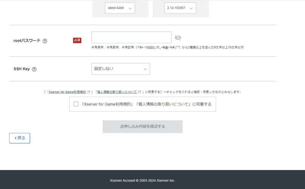 Xserver For Gameの申込先へ進んだら、申込の始める画面になります。