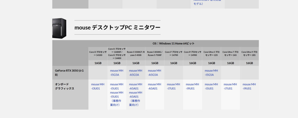けどGPUのモデルがRTX 3050 6GBやRTX 2050 LaptopとエントリーモデルがほとんどなのでG-tuneやDAIVのように高性能なモデルが存在しません。