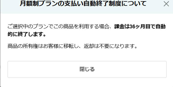 ゲーミングPCだと多くの場合、36ヶ月(3年)の継続利用で自分のものになりますが
