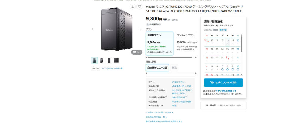 ちなみにゲーミングPCは長期使用を想定していくのでお試しであっても月額がおすすめになります。