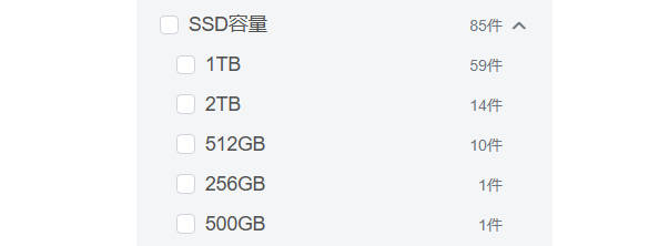 一方で SSDは多くがデスクトップとノートも1TBモデルが標準搭載していました。